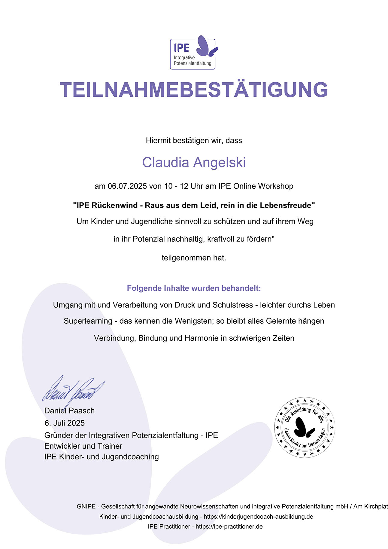Meine 3-Tagesausbildung: www.ipe-practitioner.de