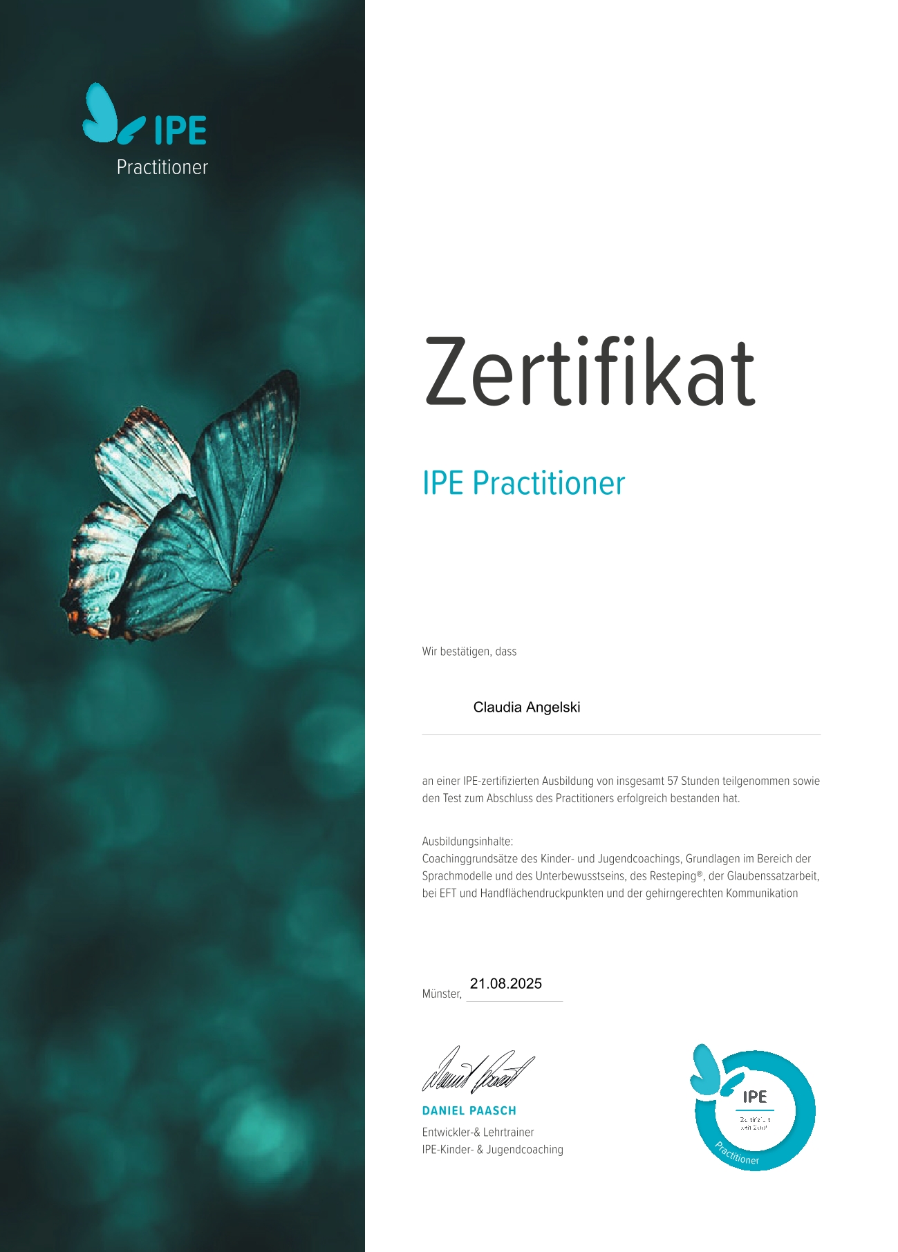 Meine 3-Tagesausbildung: www.ipe-practitioner.de